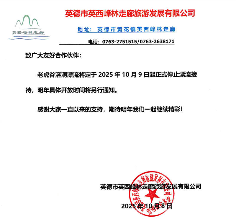 老虎谷洞漂于2025年10月9日起正式停漂!